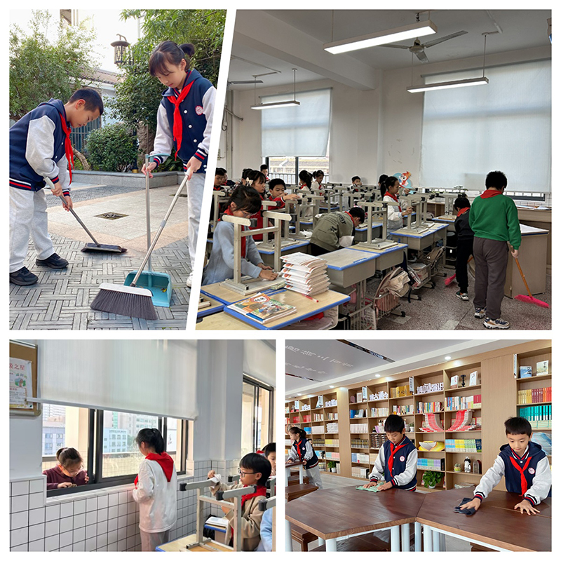 校园环境靠大家,校园清洁行动如火如荼地开展啦!清洁小卫士们手握扫把、簸箕、抹布等劳动工具,仔细打扫校园的各个角落。活动中,大家相互配合、合理分工,勤劳的脚步踏遍整洁的校园。