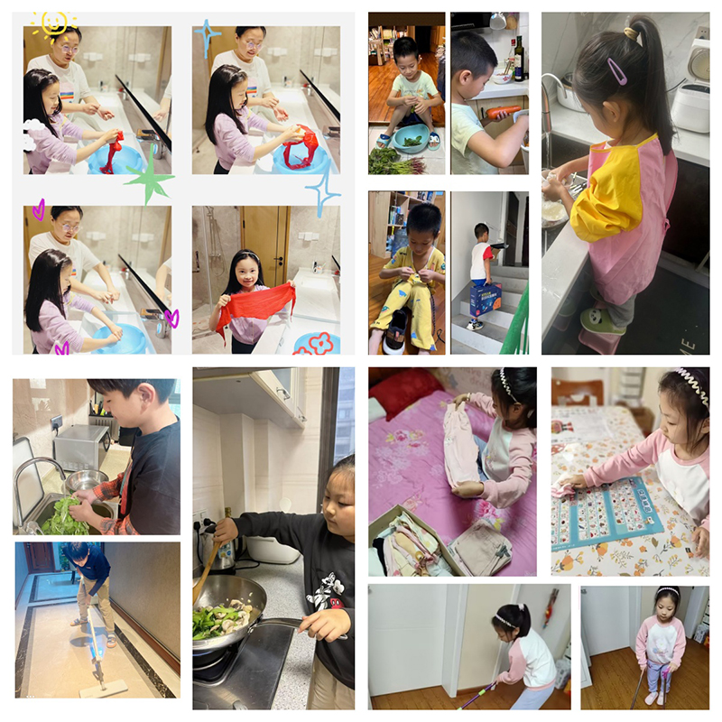 参加劳动,才知万事不易;体验劳动,才生感恩之情。为了加强亲子沟通,在劳动中增进情感交流,进一步融洽家庭育人氛围,榴娃们纷纷化身“家务劳动小达人”,在家中忙碌了起来。