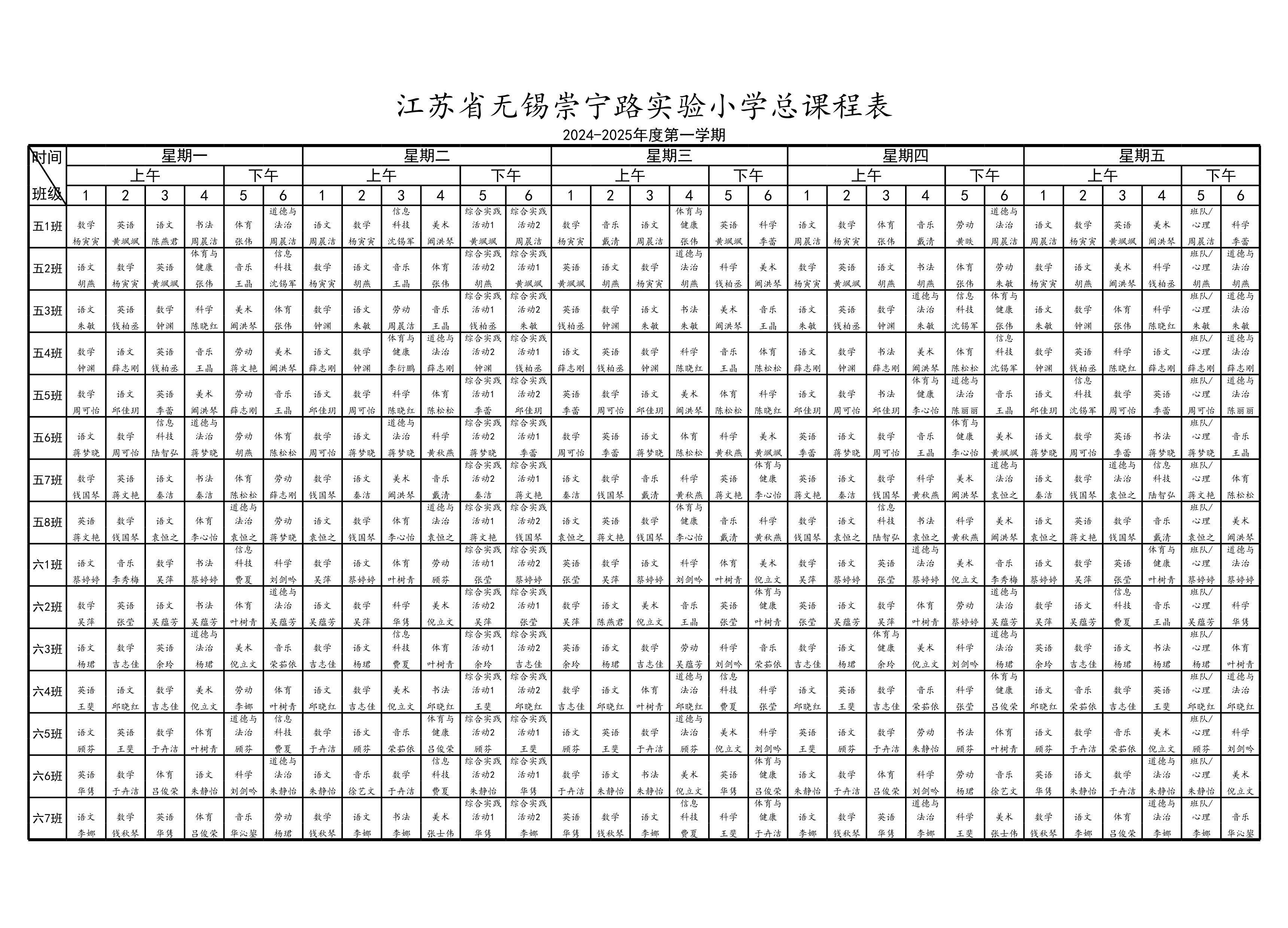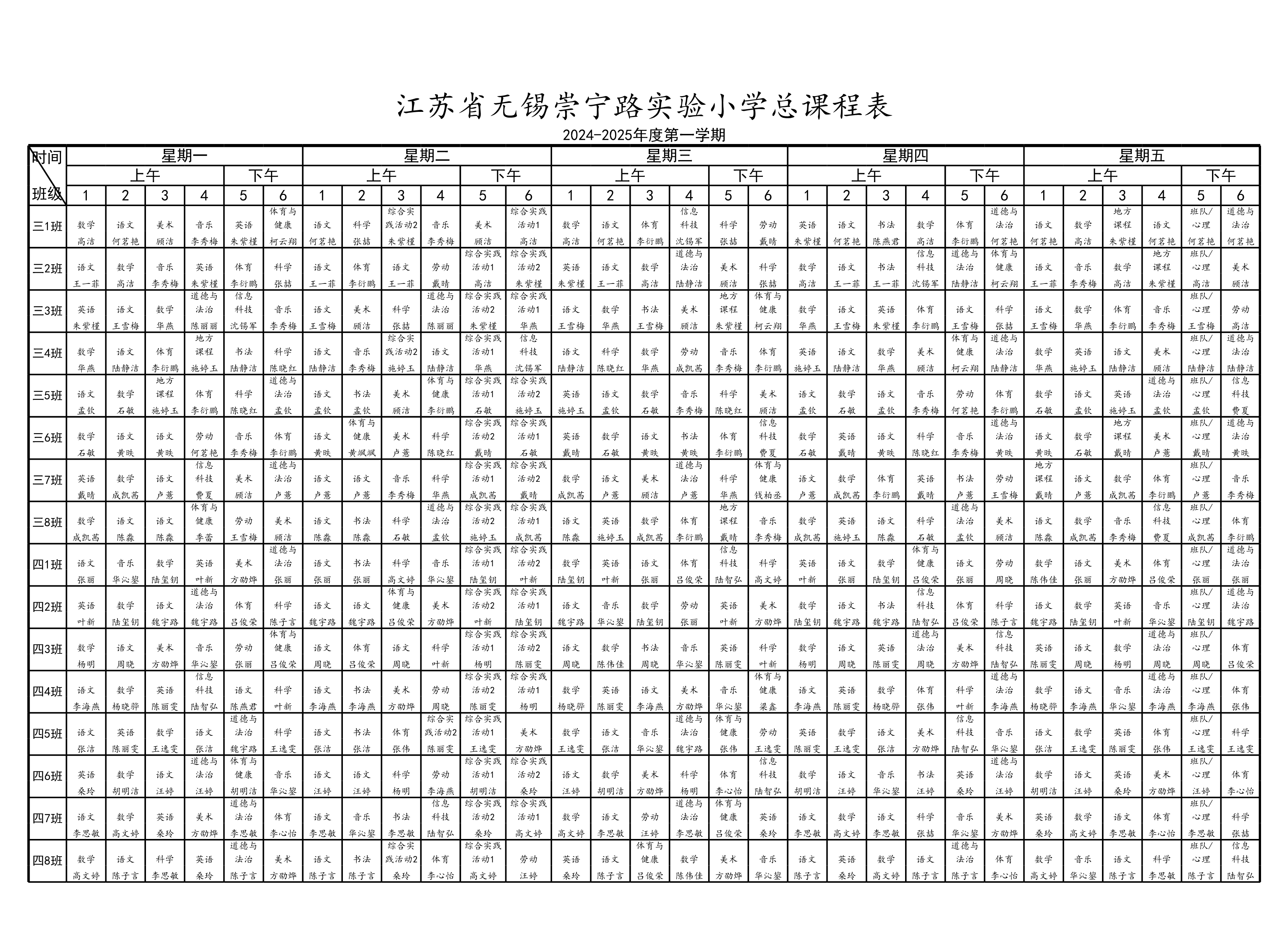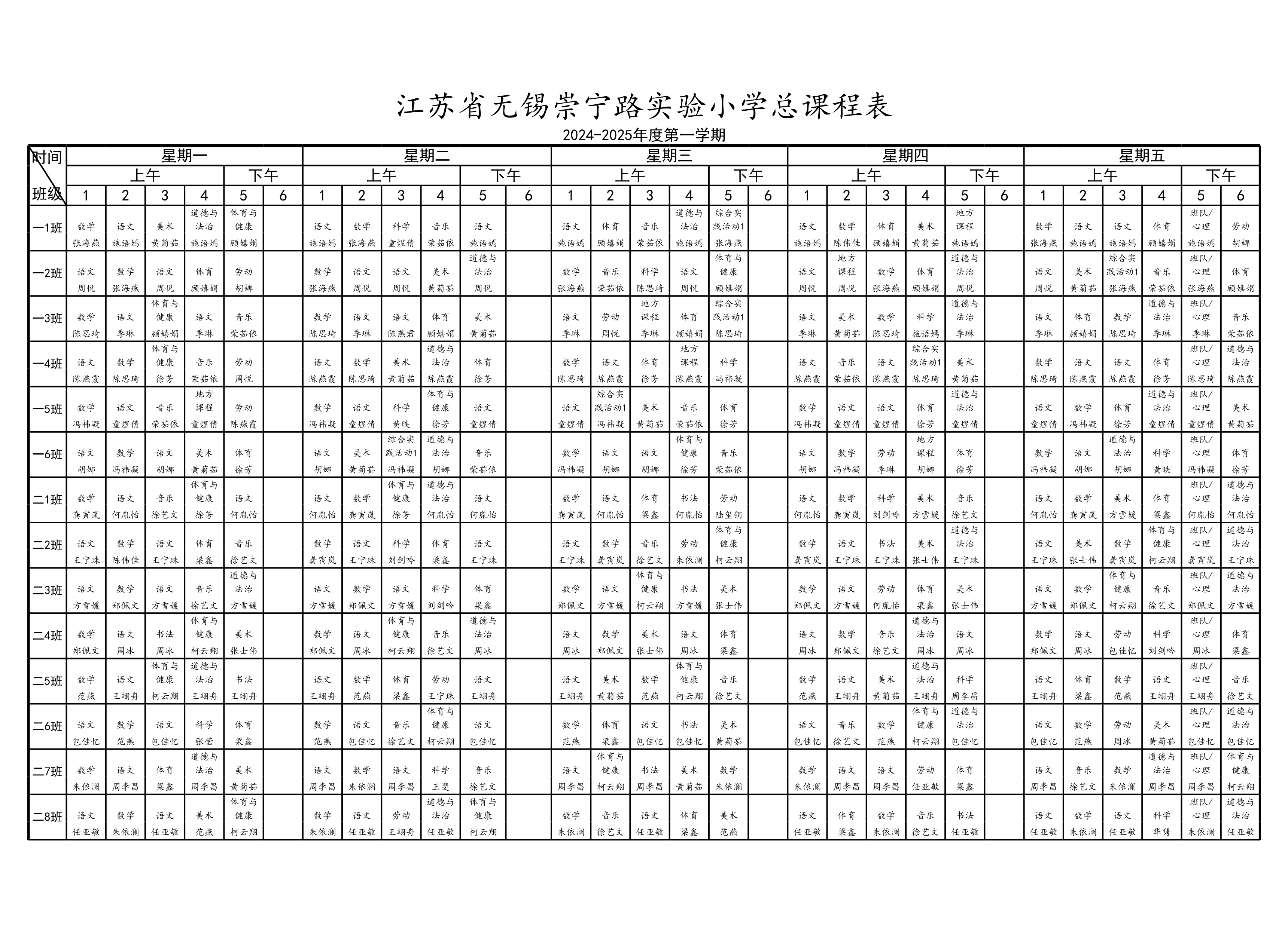 2024-2025年度第一学期学校总课程表