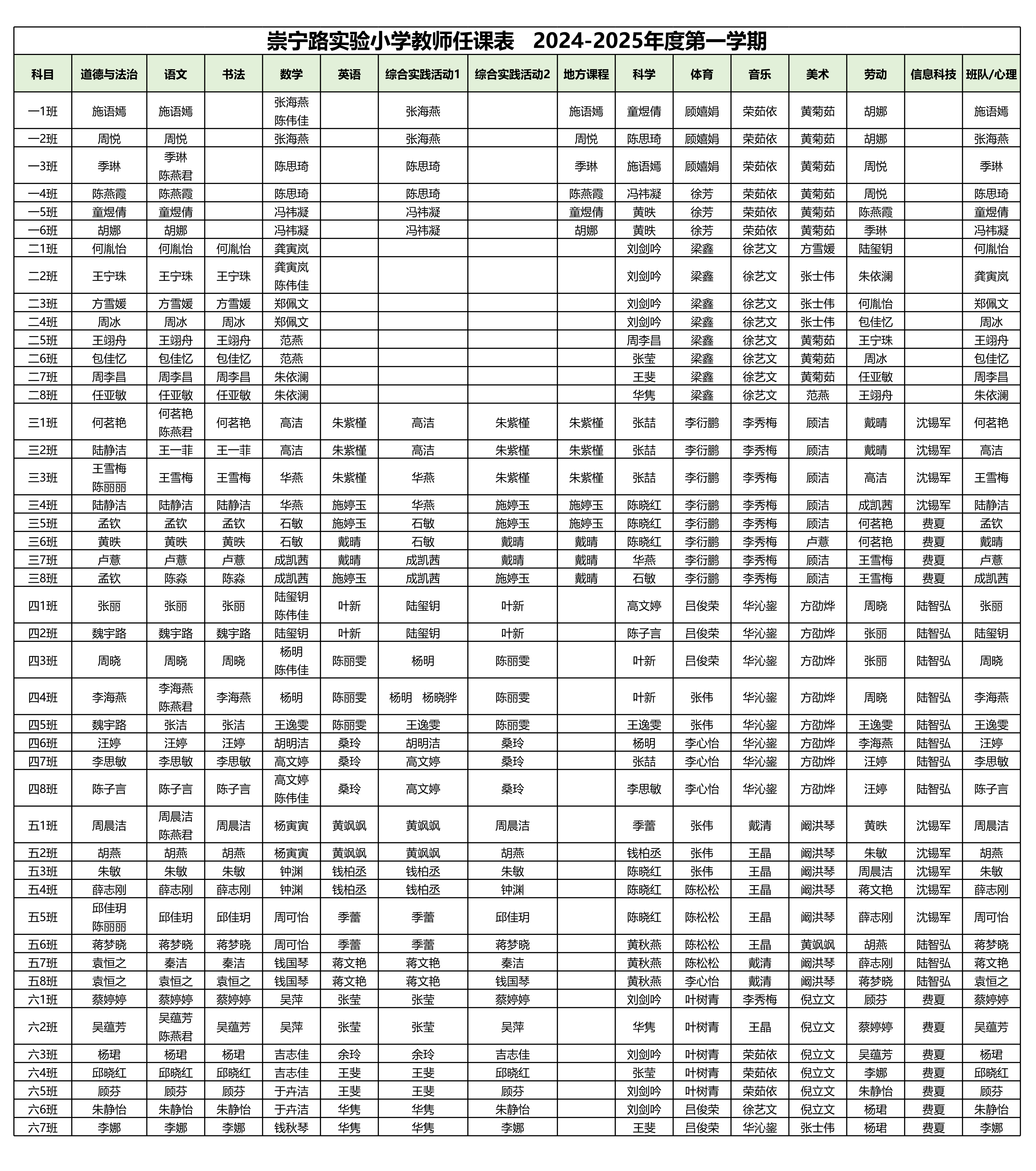 2024-2025年度第一学期教师任课表