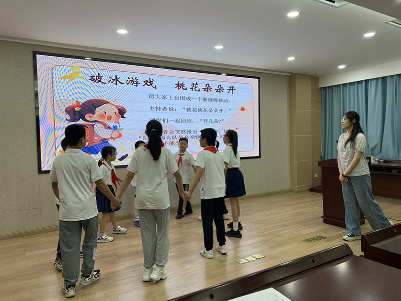 培训之初,江老师带领所有的心理委员玩起了“桃花朵朵开”的小游戏。桃花开几朵,同学们就需要以此为单位聚在一起。这个小游戏让大家在欢快的音乐声中快速融入集体,打破了彼此间的陌生状态。