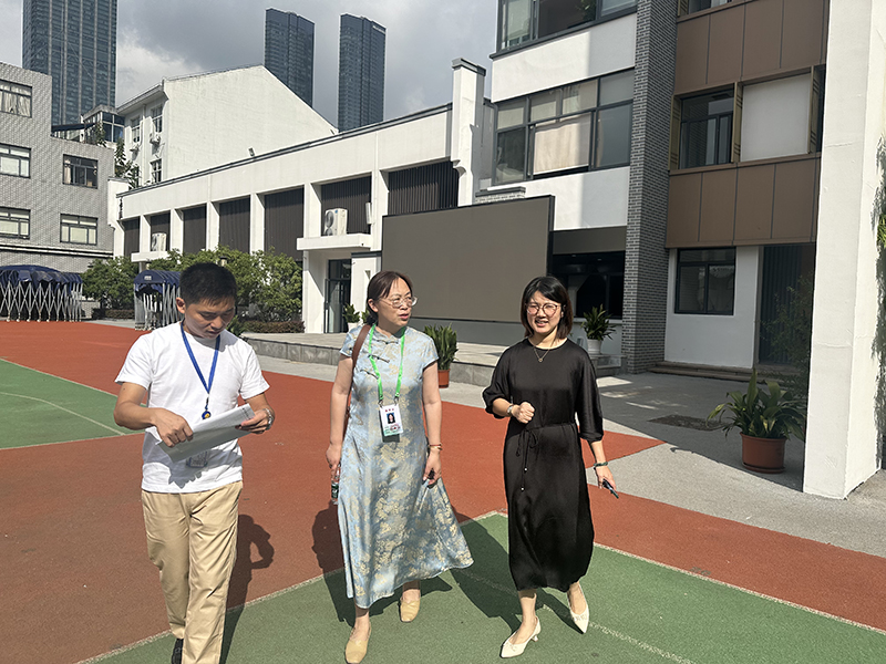 朱卫红督学首先对学校的美术与音乐专用教室、羽毛球训练场等学习空间进行了实地查看,深入了解本学期学校体育与艺术特色课程的建设与实施情况。随后,她观摩了学生的大课间活动和二年级体育课,详细了解学校体育与美育工作的具体开展情况。